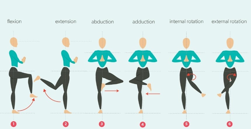 Hip is a 3 dimension joint with Flexion/Extension-Rotation-Abduction/Adduction Movements. Hence the rehab exercise plan should focus on preserving the natural physiological range of movement (ROM) and strengthen primary movers and hip stabilisers.